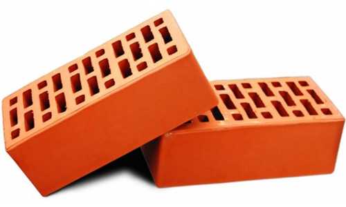 - Кирпич красный, утолщенный с горизонтальными пустотами укладывается в параметры 250X120X88 мм.