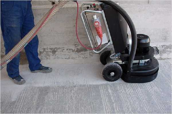 Отшлифовать пол лучше всего арендованной на полдня специальной машинкой, вручную или ленточным электроинструментом качественно выровнять поверхность под наливное основание очень сложно. Но слишком сильно увлекаться не стоит, так как главная цель шлифовки – это убрать разводы на бетонном полу, оставшиеся от движения правила, и освежить поверхность, так как грунтовка хорошо пристает к чистому бетону.