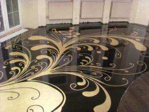 Пол с узорами имеет нарисованную картинку и также заливается полимером.