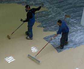 Основание под наливной пол должно быть не только идеально ровным, но вместе с тем и шероховатым. Для создания шероховатости грунтовку смешивают с мелким кварцевым песком, а дополнительное проклеивание стеклотканью поможет укрепить основание пола. Когда грунтовка высохнет, остатки кварцевого песка с поверхности пола удаляются. Совершенные ошибки на данном этапе приведут к деформации наливного пола и появлению трещин и дефектов. Когда основание полностью готово его покрывают полимерным покрытием, а после его высыхания двумя слоями лака.