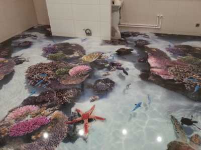 3д пол делается с картинкой с 3D изображением, в этом его принципиальное отличие. Остальное все также – на поверхность наносится полимерное покрытие.