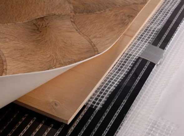Современную систему обогрева чаще всего устанавливают под паркетную доску, линолеум, ковролин. Они имеют оптимальную теплопроводность и отлично аккумулируют тепло. Но при монтаже пленочной обогревательной системы под ковролин и линолеум ее обязательно следует накрывать ДВП листами.