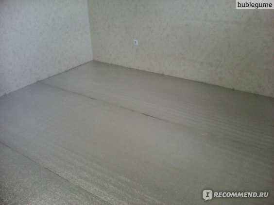 1 слой. Теплоизоляционный материал толщиной 10 мм. Укладываем по всей комнате стык в стык. Между собой можно скрепить малярным скотчем.