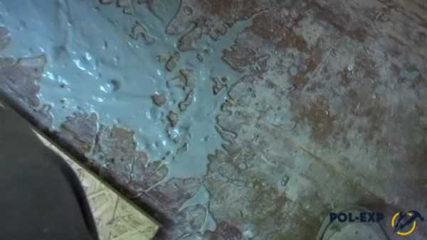 Шаг 5. Вылейте готовый раствор участок пола, его площадь должна отвечать параметрам плиты ОСП. Старайтесь, чтобы раствор равномерно растекся по всему участку. Количество материала определяется опытным путем. Вначале выливайте примерно половину массы, а потом, по мере необходимости, добавляйте.