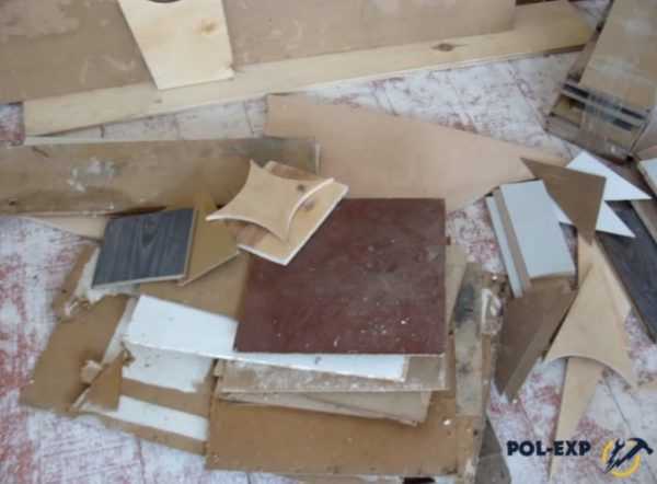 Шаг 2. Рассчитайте примерное количество и заготовьте подложки. Размеры каждой примерно 10×10 см. Можно использовать любые материалы различной толщины: отрезки фанеры, ОСП, ДСП, ДВП, ламината, досок и т. д. Чем шире выбор по толщине, тем легче будет подбирать необходимые комплекты. Для примерного контроля можете предварительно подсчитать количество подложек, но делать это необязательно. Во-первых, на одно место придется подкладывать по несколько штук. Во-вторых, вы никогда не узнаете, сколько именно и какой толщины может понадобиться подложек.
