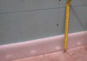 Шаг 8 – разметка уровня будущего пола | Соединив все метки, вы получите линию, до которой нужно будет производить заливку. Это вам так же даст возможность точно рассчитать необходимое количество материала. |