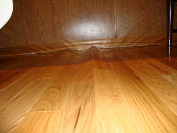 Неровности на полу образовались из-за использования влажных досок. Во время высыхания они покоробились, максимальный перепад по высоте до сантиметра.