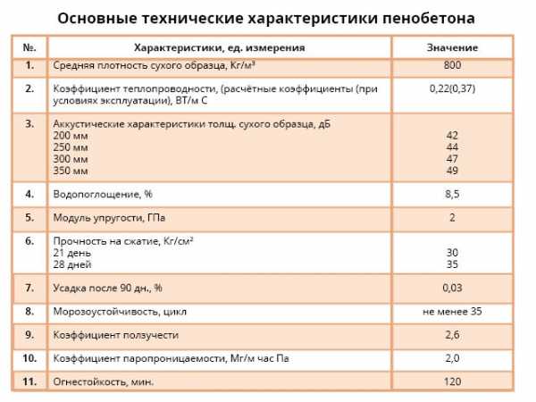 Пенобетон, используемый при стяжках пола, характеризуется следующими параметрами: