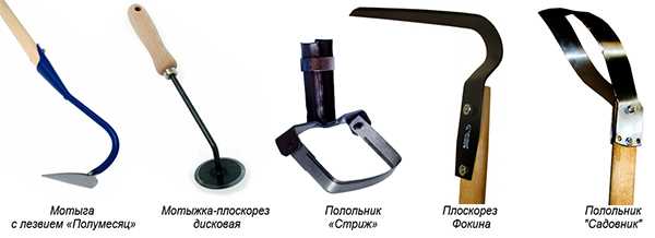 Как видите, для прополки на садовом участке подходят плоскорезы, полольники и специальные мотыги. При выборе инструмента обратите внимание на длину ручки, она должна быть достаточной, чтобы не приходилось нагибаться.