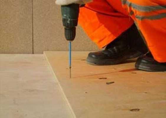 После этого напольное покрытие из фанеры крепят при помощи саморезов к основанию так, чтобы шляпки были утоплены.