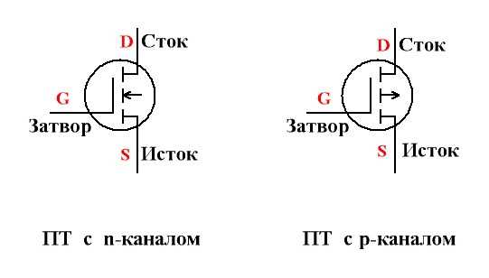 Скажем только, что ПТ могут быть с n-каналом (при этом ток в канале создается отрицательно заряженными частицами) и p-каналом (ток создается положительно заряженными частицами). На графическом изображении у ПТ с n-каналом стрелка направлена внутрь, у ПТ с p-каналом – наружу.