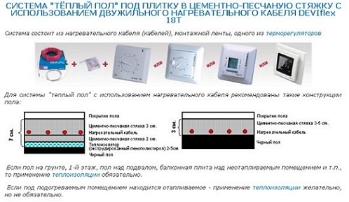 Кабель монтируется в слой плиточного клея или ровнителя.