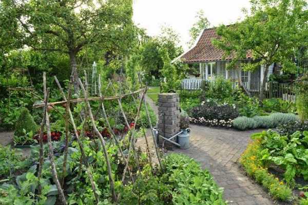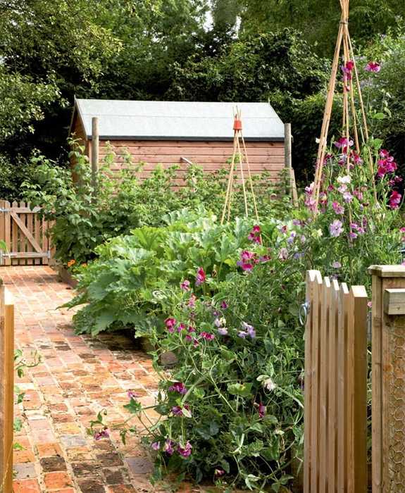 Не менее, чем дорожки, важен подбор декоративных растений, которые бы привлекали к себе внимание с разных концов сада и объединяли овощной садик с плодовым.