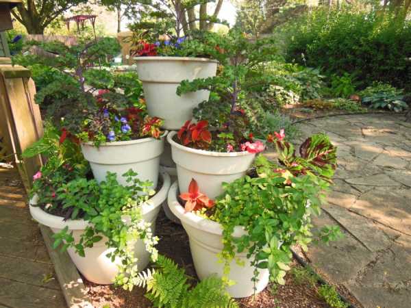 Потому грядки-пирамиды используются не только с практической выгодой, но и как элемент ландшафтного дизайна. Ее можно делать из любых подручных материалов, любого размера и формы. Используются, например, пластиковые бутылки, автомобильные покрышки, металлические или пластиковые трубы, даже цветочные горшки.