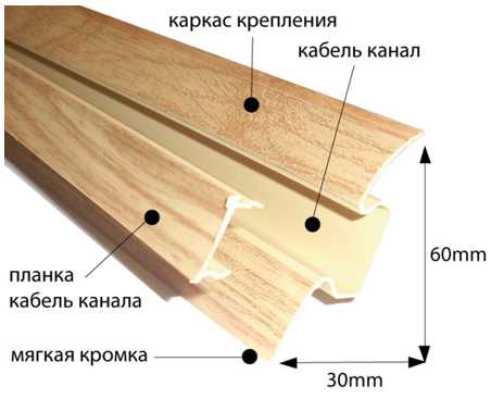 - даже при минимальной толщине плинтуса с кабель-каналом он может удерживать любое количество проводов.