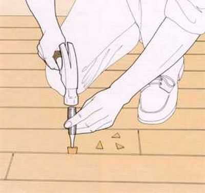 3) самым трудоемким направлением устранения возникшей проблемы является перекладывание досок, однако к этому типу косметического ремонта следует прибегнуть, если щелей между досками образовалось много и они достаточно широкие.