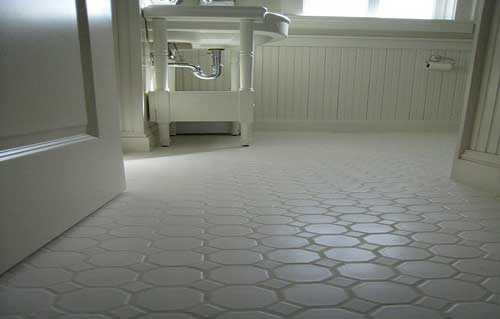 Пол в ванной из линолеума — простая недорогая практичная конструкция, идеальна для использования в ограниченный период времени. Выбор рисунков очень широк, такой пол нескользкий и даже кажется более теплым, чем плитка. Аналогичны достоинства специального водостойкого ламината, из которого также можно сделать пол в ванной комнате. Ламинат воспринимается на ощупь немного более холодным, чем линолеум