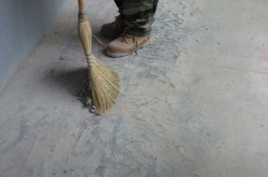 Когда все залатанные части застынут, нужно тщательно подмести основание, очистить его от пыли и грязи. В идеале использовать строительный пылесос, который максимально обеспылит поверхность.