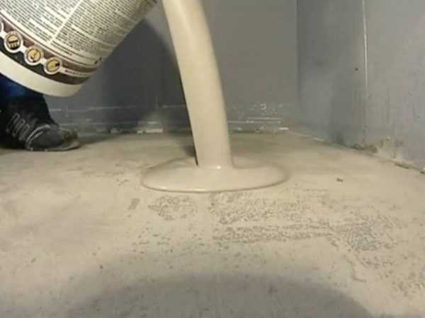 - Так как раствор начинает густеть примерно через полчала после приготовления, то работу необходимо выполнять максимально быстро: переворачиваем емкость и выливаем весь раствор на основание.