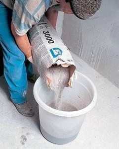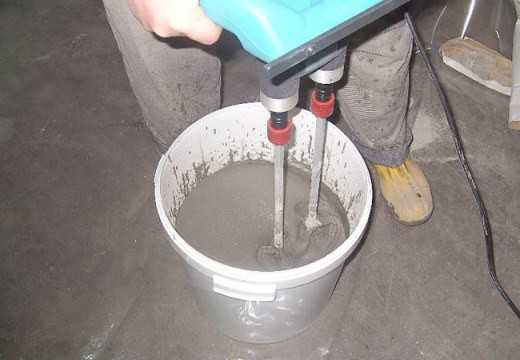 - Замешивание раствора согласно инструкции. Важно точно отмерить количество материалов и четко соблюсти пропорции.