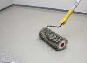 На чистую сухую поверхность пола, нанесите разбавленную 1 к 4 грунтовку. Наносить грунтовку можно кистью или валиком, нанесите равномерный слой грунтовки на пол, чтобы произвести равномерное покрытие без каких-либо бассейнов или луж.