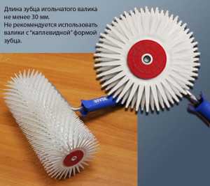 - Игольчатый валик. Также применяется для разравнивания смеси по поверхности пола. Высота иголок должна быть на пару миллиметров больше толщины заливаемого слоя, иголки должны быть острыми.
