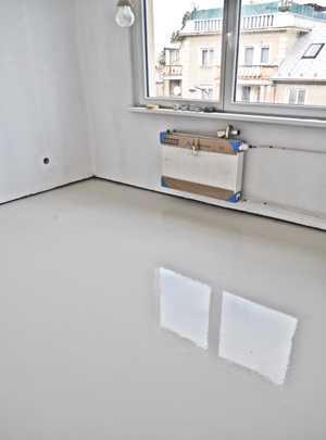 - Приготовление к финишной отделке пола. Применяется для удаления дефектов чернового покрытия, при этом наносится тонкий слой самовыравнивающейся стяжки от 2 до 25 мм высотой.