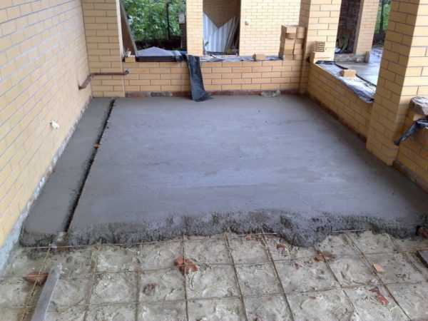 Бетонный раствор добавляют по мере необходимости, так чтобы работа шла непрерывно. Излишки раствора в конце заливки помещения аккуратно удаляются.