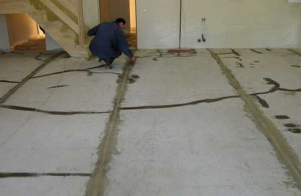 - Если планируется связанная стяжка, то необходимо тщательно вычистить имеющиеся углубления, разделать трещины или щели на ширину не менее 5 мм, чтобы в них мог свободно проникнуть бетонный раствор при заливке.