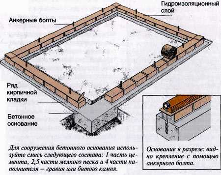 Оптимальным вариантом будет сооружение ленточного фундамента с бетонной основой. Место для строительства следует выбирать максимально освещенное, защищенное от ветра.