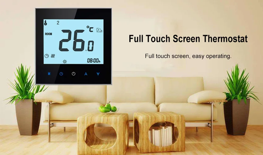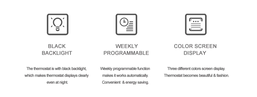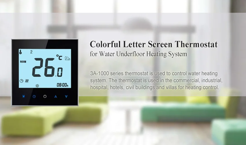 - 3A-3000 Термостат для нагрева воды представляет собой термостат с сенсорным экраном и трехцветным буквенным дисплеем. Поскольку термостат имеет черную подсветку, он выглядит красивее и моднее. Он подходит к разным стилям украшения дома.