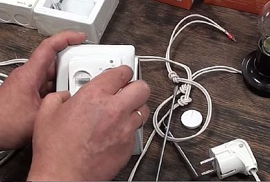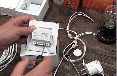 Далее, вместо теплого пола подсоединяете к термостату обычную лампочку накаливания. Начинаете выкручивать ручку, изменяя температуру.