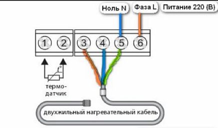 Схема подключения теплого пола напрямую через терморегулятор разных производителей однотипна и выглядит следующим образом.