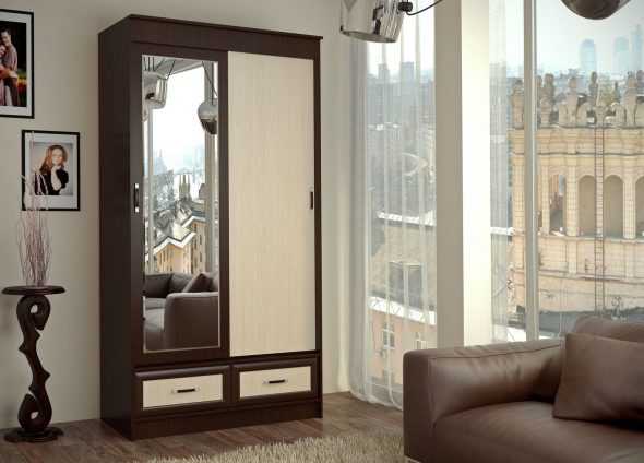 Стандартный шкаф с раздвижными дверями, в котором присутствуют все стенки, образующие единое целое. Они могут быть совершенно по-разному наполнены местами для хранения внутри. Кто-то предпочитает полочки, кто-то плательные отделы, корзинки, вешалки и многие другие конструкции. Прекрасный вариант мебели для тех, у кого пространство позволяет вместить шкаф, он мобильный, то есть его можно передвигать с места на место. Изготавливаются такие шкафы, как из натурального массива дерева, так и ДСП, МДФ. От материала корпуса и дверей в первую очередь зависит цена готового изделия.