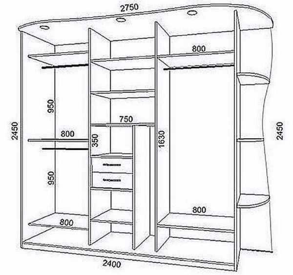Для удачной планировки внутреннего пространства нужно определиться с предназначением конструкции, продумать необходимость каждой секции. Иногда здесь обустраивают специальный отсек для гладильной доски или даже мини-кабинет. Рассмотрим основные зоны, которые необходимы для аккуратного расположения вещей. К таковым относятся: