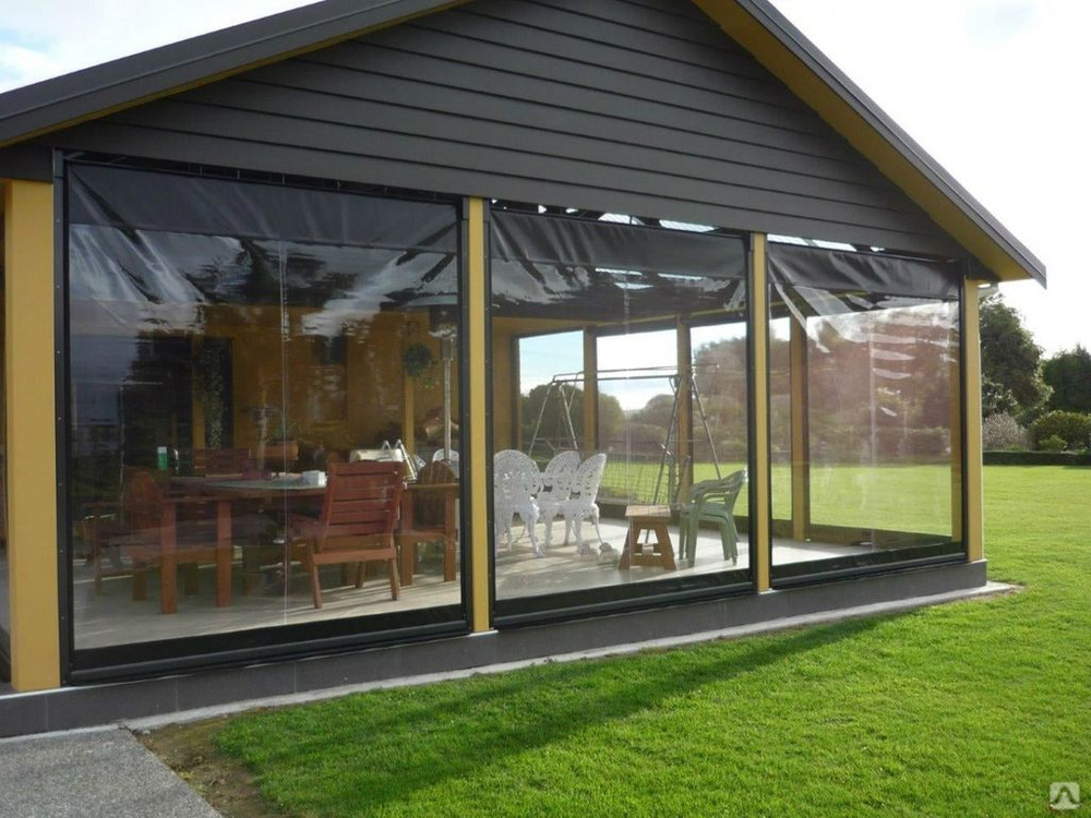 Прозрачные шторы из ПВХ для беседок подойдут постройке любой архитектуры.