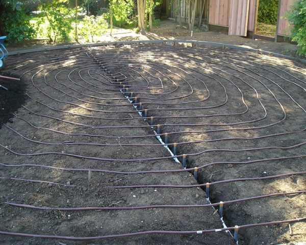 Подземный полив заключается в создании специальной канавы, в которой закладывается пластиковая труба. В ней должны присутствовать равномерные отверстия. Для данной оросительной системы должны быть соблюдены следующие требования: