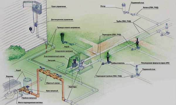 Автополив газона — принципиальная схема системы (ист: poliv.ua)