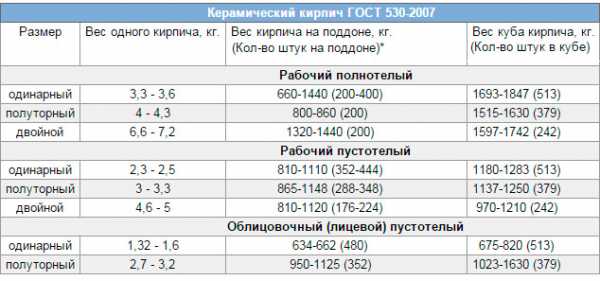 Вес кирпича вместе с поддоном
