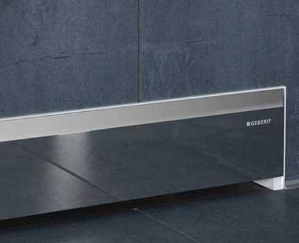 В ряду пристенных линейных конструкций есть усовершенствованные варианты, дополненные приспособлениями для брызгающей на стену воды. Одним из характерных примеров является модификация трапа известной компании Geberit, специализирующейся на производстве сантехники с инсталляциями.
