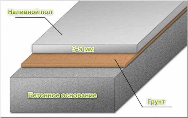 Схематическое устройство наливного полаОсновной характеристикой любой смеси для наливного пола является ее состав. В зависимости от компонентов, используемых для производства напольного покрытия, различают четыре основных вида составов:
