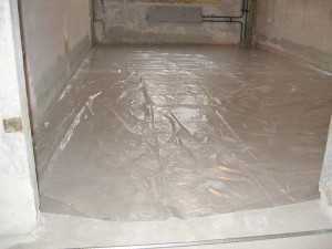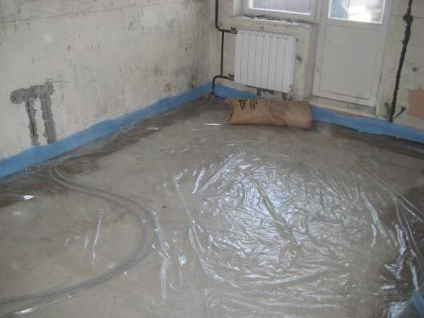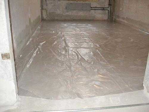 - На бетонную основу полов укладывается полиэтиленовая пленка, которую используют как гидроизоляционную защиту.