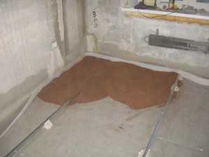 Итак, все материалы закуплены, и можно переходить непосредственно к основанию пола. Если вы делаете ремонт в квартире, то демонтируйте всю старую отделку и сопутствующие ей слои до железобетонной плиты перекрытия. Теперь осмотрите плиту, и если обнаружили ее дефекты — трещины, выемки или сколы, обязательно заделайте их. Используйте для этого цементно-песчаный раствор или готовые штукатурные смеси. После того как нанесенные растворы засохнут, берите в руки веник и подметайте пол, освобождая его от грязи и пыли. Далее застилайте на пол гидроизоляционный материал.