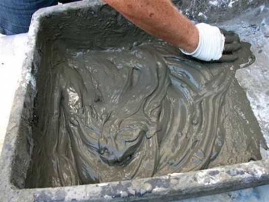 6. Замешиваем раствор. Последним компонентом в него добавляется жидкое мыло. Пластификатор добавляем крайне осторожно, чтобы не допустить его переизбыток, иначе это приведет к медленному затвердению массы бетона.