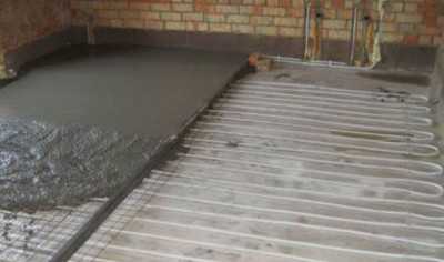 Такой способ применяется как для стяжек полов с элетрообогревом, так и для водяных полов. Важным фактором является толщина слоя над греющим элементом не менее 30 мм.