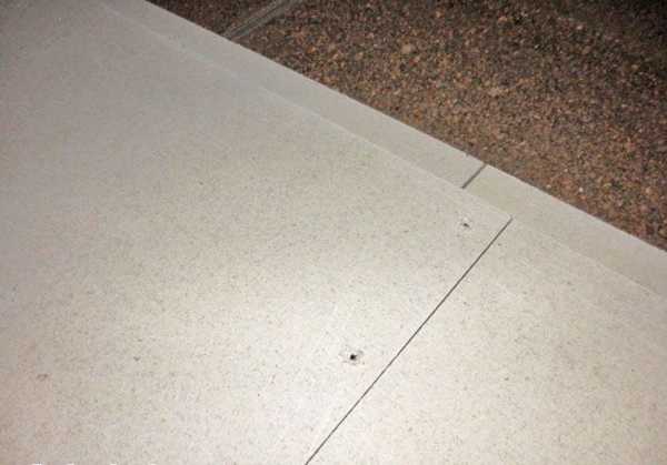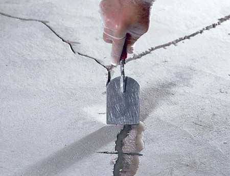 - Поверхность плиты нужно осмотреть и заделать все обнаруженные на ней дефекты (выемки, трещины, сколы), используя для этой цели готовую штукатурную смесь или цементно-песчаный раствор.