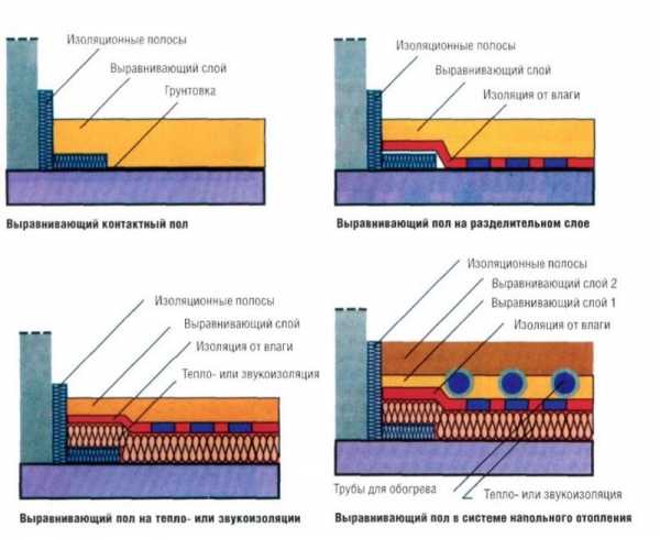 Классический пирог сборной стяжки пола состоит из трех слоев: