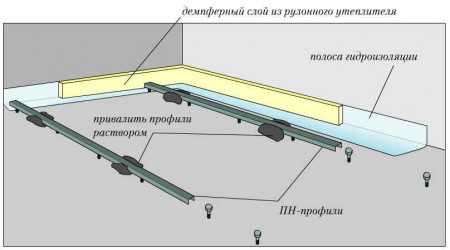 - От размеров пола будет зависеть также количество направляющих металлических профилей.