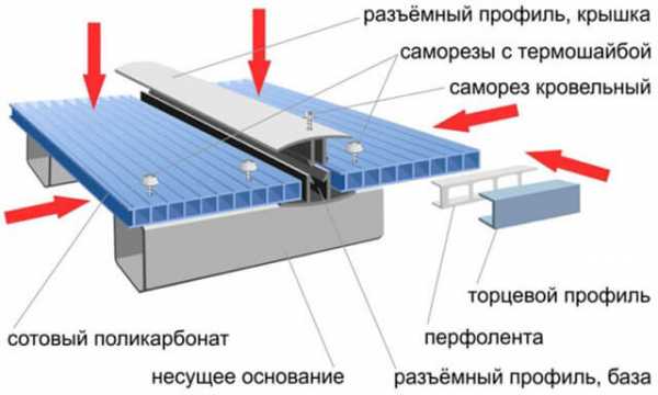 Крыша из поликарбоната для дома состоит из двух основных элементов:
