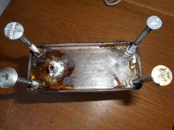 Заранее к железному сосуду были припаяны болты и медный штуцер.